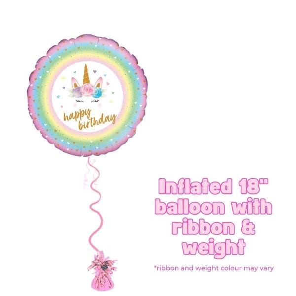 Make Someone's Day Extra Special With This Happy Birthday Unicorn Flowers Foil Balloon. Perfect For Celebrating And Decorating Unicorn Themed Birthday Parties.
