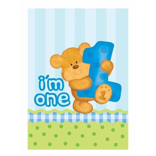 1st birthday boy blue bear party loot bags 16.5cm x 22.86cm x8. Decorate your little ones birthday party and make it extra special with the first birthday bear boy blue tableware and decoration range. Here at thepartymonster.co.uk we have a wide range of 1st birthday party supplies for both boys and girls.