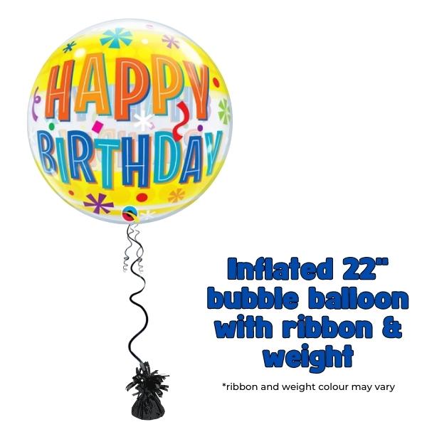 Happy Birthday Fun And Yellow Bands Bubble Balloon. The Perfect Birthday Gift And Birthday Party Decoration.