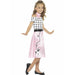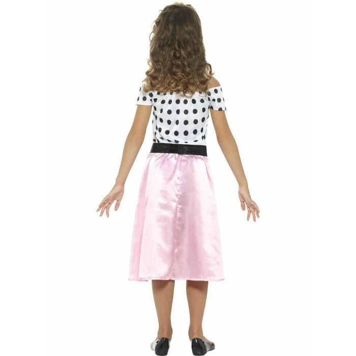 Take On The 1950s With Our Poodle Girl Costume. The Poodle Girl Costume Includes Dress With Black Polka Dots And Pink Skirt, Neck Tie And Black Belt.