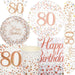 Get the complete party in a box. This Happy Birthday party box contains rose gold fizz style party products for the milestone 80th party, all prepared in one box.