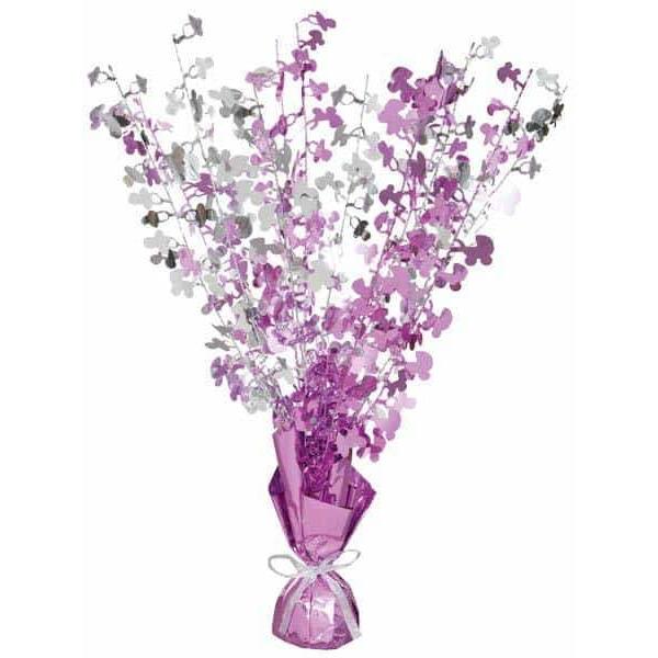 Baby Shower Girl Pink And Silver Weighted Foil Balloon Centrepiece. This Balloon Centrepiece Is 50cm High And Would Make The Perfect Baby Shower Table Centrepiece.