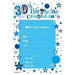 Invite Your Friends And Family To Your Special Occasion With Our Blue 30th Birthday Party Celebration Invitation Party Sheets With Star, Streamer And Balloon Design.