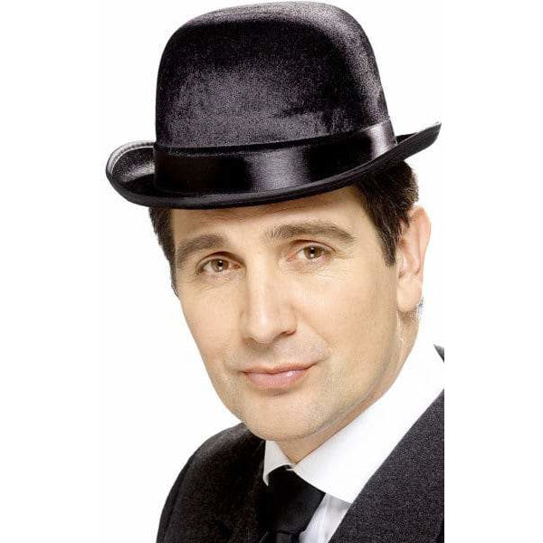 Finish Off Your Historical American Gentleman Costume In Style With This Black Felt Derby Bowler Hat With Black Band.