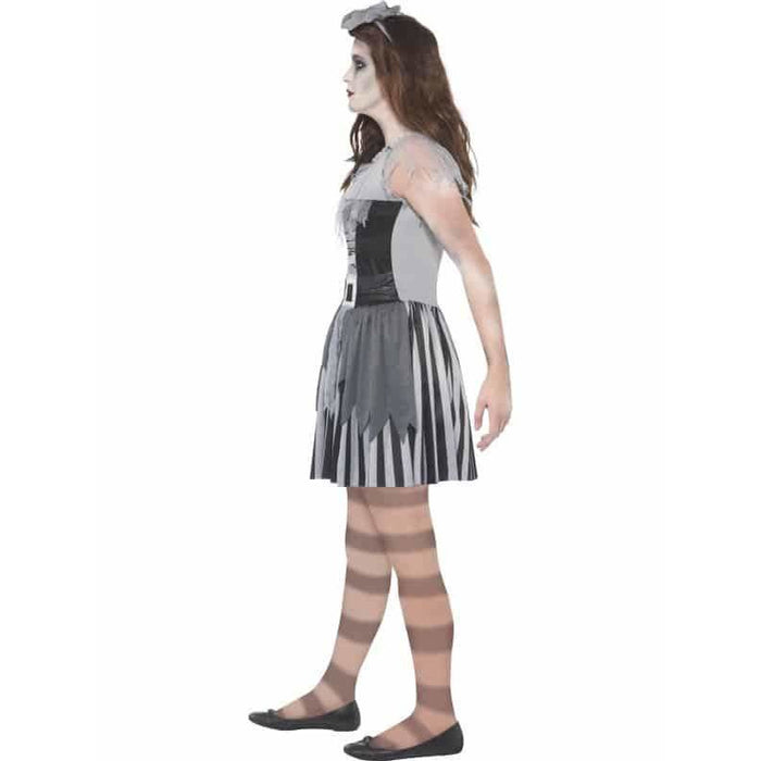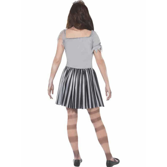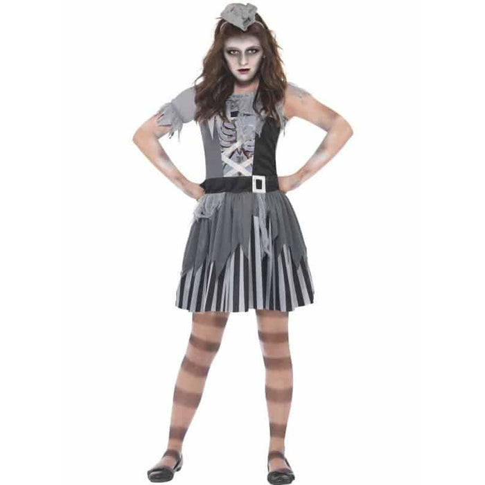 Girls Halloween Ghost Ship Pirate Fancy Dress Costume. This Girls Halloween Costume Includes A Black And Grey Dress With A Mini Grey Hat.