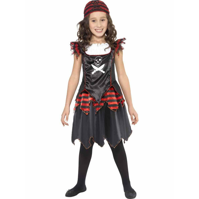 Gothic Pirate Girl Fancy Dress Costumes Are Perfect For Caribbean Themed And World Book Day Events. This Skull And Crossbones Pirate Girl Costume Includes Dress And Headscarf.