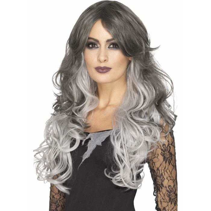 Finish Off Your Spooky Halloween Look With Our Deluxe Long Grey Gothic Bride Wavy Wig.