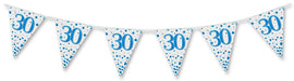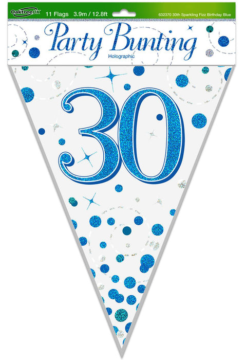 Decorate And Celebrate Your Birthday With Our Happy 30th Birthday Blue Sparkling Fizz Party Bunting.