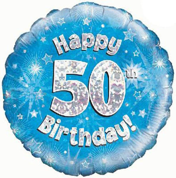 Make Someone's Milestone Day Feel Extra Special On Their 50th Birthday With This Sparkle Holographic Blue And Silver Birthday Foil Balloon.