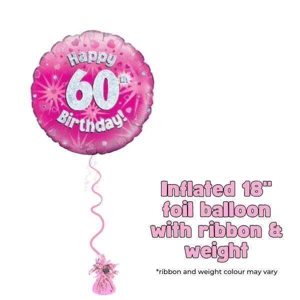 Make Someone's Milestone Day Feel Extra Special On Their 60th Birthday With This Sparkle Holographic Pink And Silver Birthday Foil Balloon.