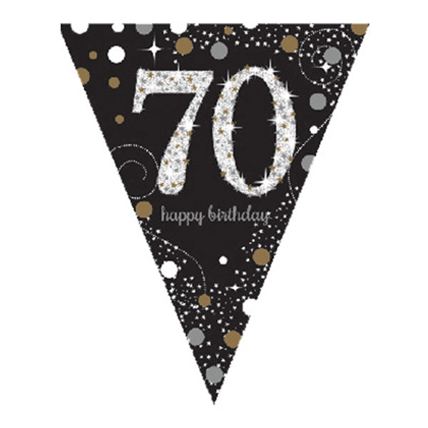 Decorate And Celebrate 70th Birthday Parties With Our 70th Happy Birthday Gold Sparkling Celebration Prismatic Pennant Banner.