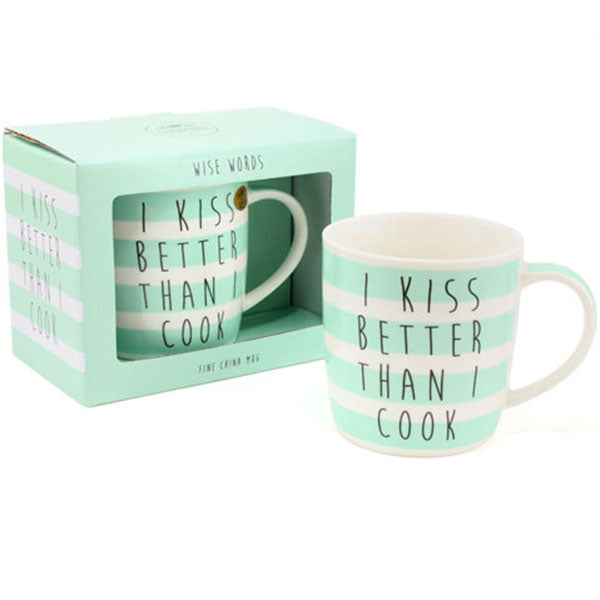 I Kiss Better Than I Cook Mugs Are Part Of A New Range Of Wise Words Fine China Mugs. All In Matching Display Boxes These Mugs Make The Perfect Gifts For Birthdays Or If Your a Better Kisser Than A Cooker.