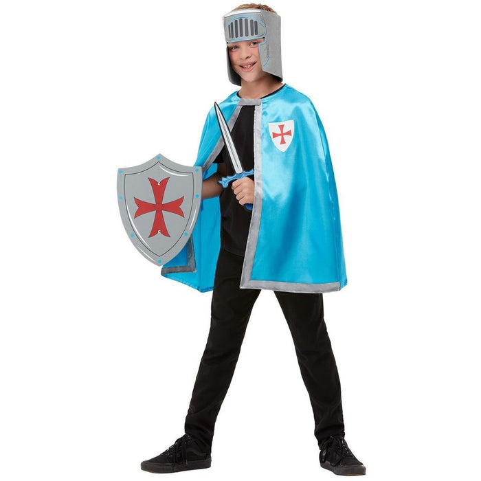 Battle It Out For Best Fancy Dress In Our Children's Knight Dressing Up Kits Featuring Blue Cape With EVA Helmet And Sword.