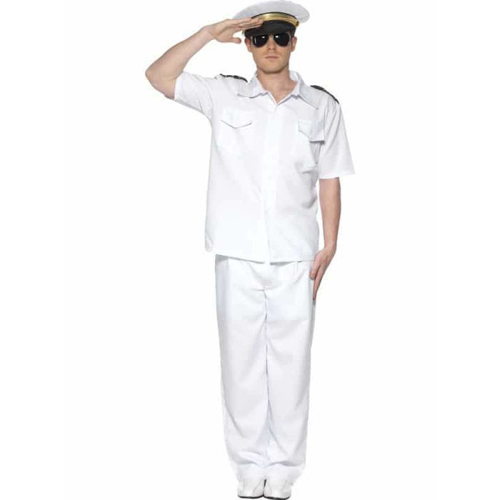 Sail Into Your Fancy Dress Event Looking In Control With This Male White Captain Costume Complete With Short Sleeved Jacket, Trousers And Hat.