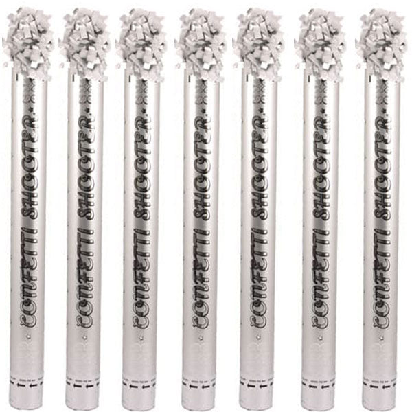Make Your Celebration And Party Start With A Bang Using Silver With Silver Paper Confetti Shooter Cannons. They Are Perfect For Celebrating Special Occasions Including Christmas And New Year Celebrations, Weddings And Birthday Parties. The Silver Confetti Cannons Rotate Anti Clock Wise At The Base Of The Cannon To Release The Silver Paper Confetti.