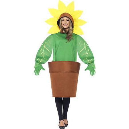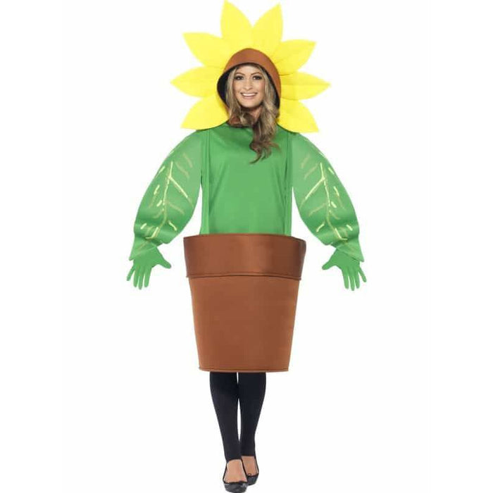 Look Blooming Gorgeous At Your Fancy Dress Event In This Sunflower Costume. This Flower Themed Costume Includes Top With Attached Hood, Plant Pot And Gloves.