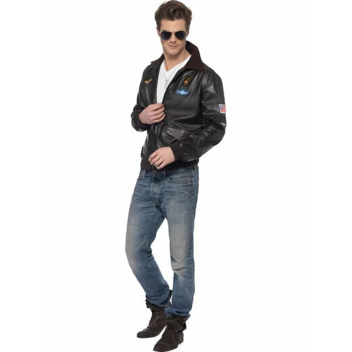 Look The Part At Your Fancy Dress Party In This Officially Licensed Male Top Gun Bomber Jacket With Brown Motifs Made Famous By Tom Cruise In The Top Gun Movie.