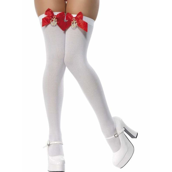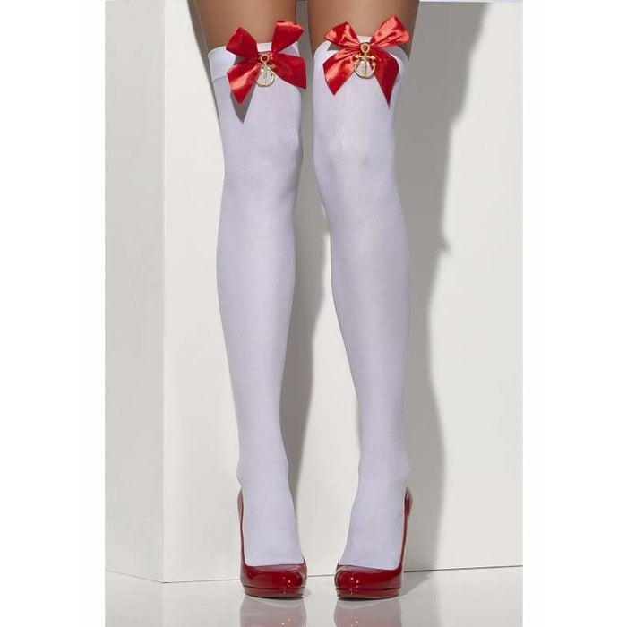 Express Yourself In These White Sailor Hold Ups With Bows And Anchor Detail. Our Fever Hosiery Collection Gives You A Luxury Feel And A Sensual Look That Allows You To Style Yourself With Confidence.